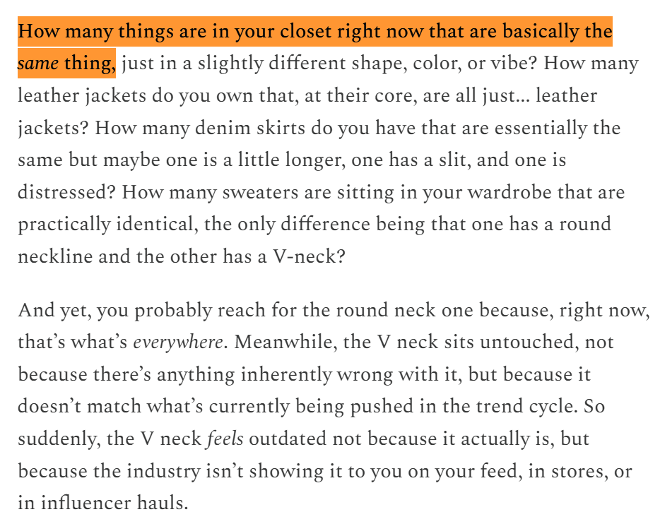 A big part of getting comfortable with your closet is in accepting that pretty much everything you own will fall in and out of ✨trending fashion✨ at some point in time.