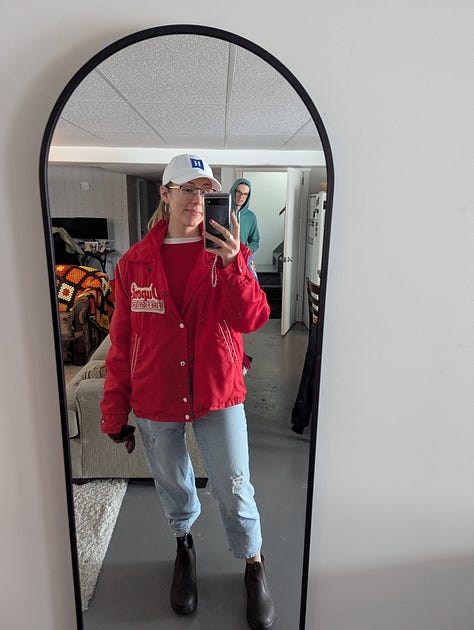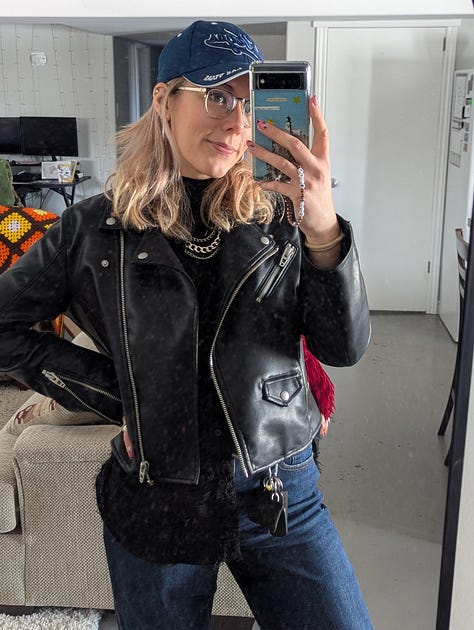 again, but really, she said it best:As I’ve gotten to know myself and my style, I find there are some core garments I reach for over and over again regardless of the trend cycle. But there are other garments (namely denim, skirts, and shoes) that I always keep an eye out for fresh takes on. Jackets too, I’m always looking for something cool.